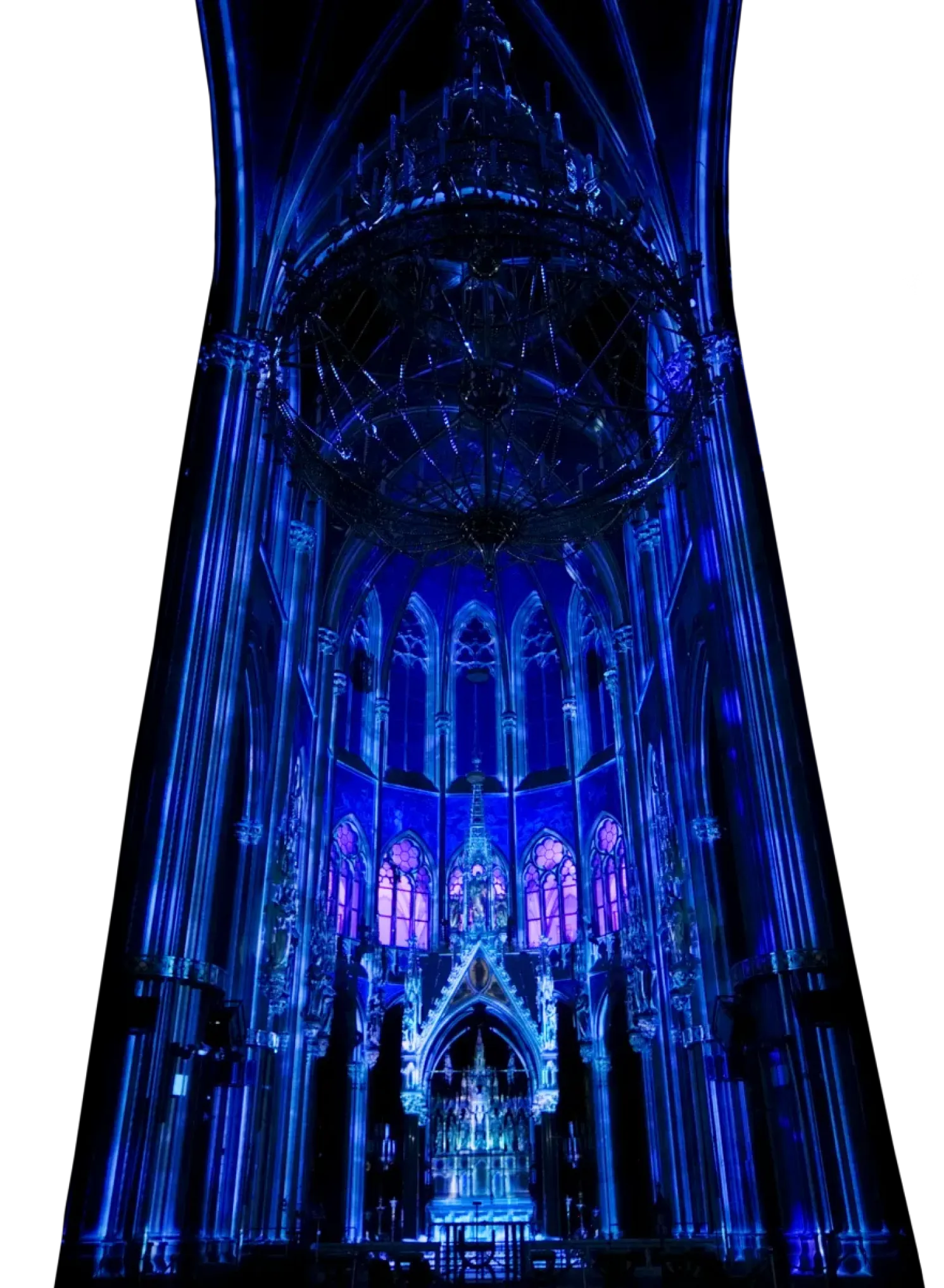 Shapes the luminous interplay between Gothic architecture and cutting-edge technology, turning the church itself into the stage.